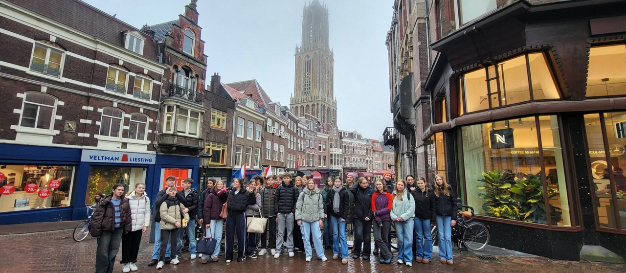 Dienstag sind wir gemeinsam in eine Kletterhalle gegangen und Mittwoch haben wir Utrecht besucht. Dort haben wir die Stadt erkundet und den Domturm bestiegen - 465 Stufen! Donnerstag gab es eine Pizzaparty und am Freitag, unserem letzten Tag, haben wir unsere Projekte vorgestellt. Schließlich haben wir uns von unseren Austauschschülern verabschiedet und sind in den Zug zurück nach Deutschland gestiegen.