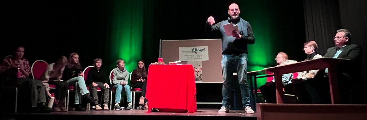 Für die Finanzierung der Buchpreise bedanken wir uns herzlich bei der Buchhandlung Hoffmann sowie beim Schulverein des GamMas. Unseren Technikern Christian Ellmers und Jasper Haack danken wir für die Schaffung einer angenehmen Atmosphäre und Herrn Baron für die gelungene Moderation!