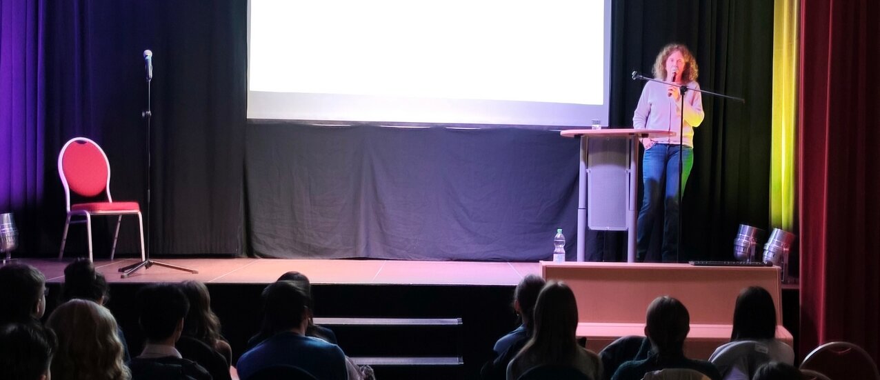 Der erste Vortrag fand für den 13. Jahrgang statt: "Gewalt in Teenagerbeziehungen", gehalten von Frau PD Iris Stahlke (siehe Fotos).