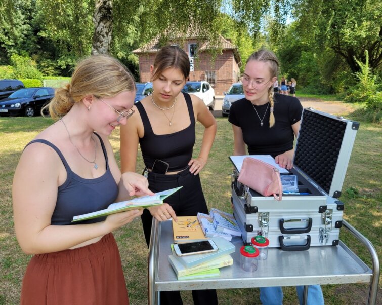 - Eine nennenswerte Aktivität in Jg. 12/13 stellt die freilandbiologische Untersuchung des Weserwassers an der Ökostation am alten Ölhafen in Achim dar. Dort führen die Schülerinnen und Schüler im Rahmen des Semesterthemas ,,Ökologie“ verschiedene Versuche zur Ermittlung der Wasserqualität in Hinblick auf verschiedene Faktoren (z.B. Sichttiefe, Nitratgehalt, pH-Wert) durch und deuten diese.