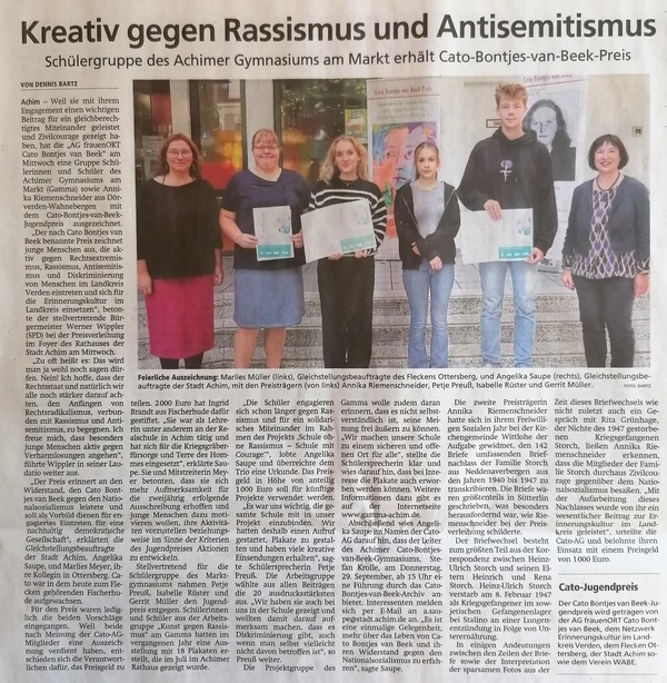 Unten sieht man die Artikel aus dem Achimer Kurier und dem Achimer Kreisblatt vom 23.9.2022.