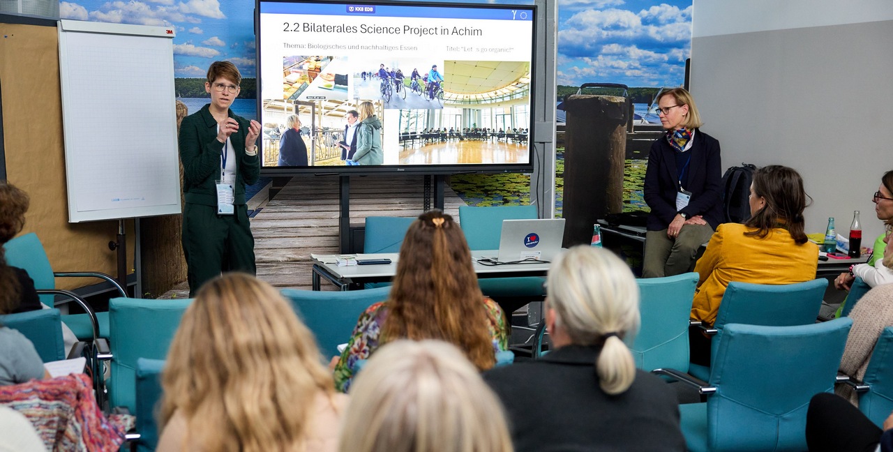Während der Veranstaltungstage präsentierten die PreisträgerInnen ihre erfolgreichen Projekte (Bild 3; PAD/Marcus Gloger) und auch durch weitere Workshops und Vernetzungstreffen konnten alle Teilnehmenden von den Ideen und Kontakten profitieren, die wiederum in die eigene Arbeit an den Schulen in zukünftige Projekte einfließen können.