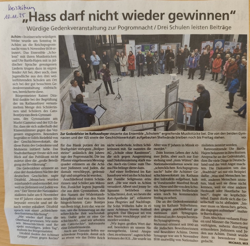 Auch in diesem Jahr hat das GamMa an einer Gedenkveranstaltung zur Pogromnacht teilgenommen. Hier der